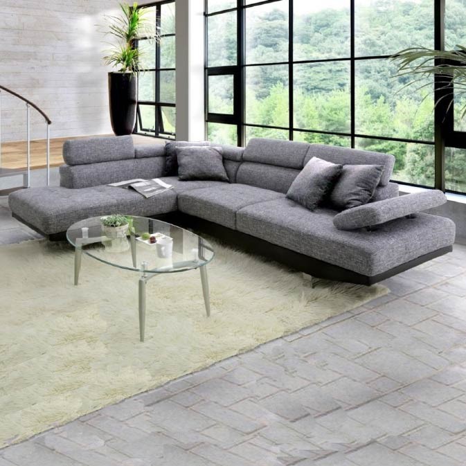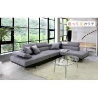 カウチソファ 大型 PVCレザー/ファブリックコンビ 3人掛けソファ ソファ コーナーソファ(3P+カウチ) GOK グレー 特価 爆買