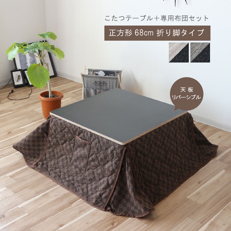 こたつ布団セット コンパクトこたつテーブル 角型 幅68cm 正方形 脚折りたたみ式 コタツ 暖卓 炬燵 天板リバーシブル ブラック ヒーターは日本製 特価