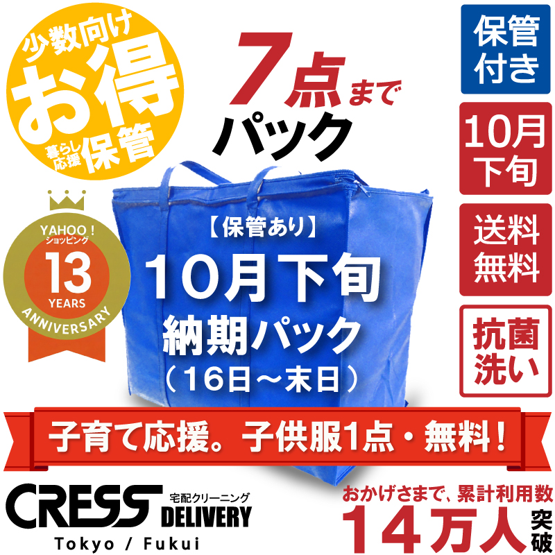 子育て応援企画で子供服1点無料 クリーニング 宅配 保管 7点まで 詰め放題 ダウン クレス 宅配クリーニング ボーナスプラス (10月下旬7点)