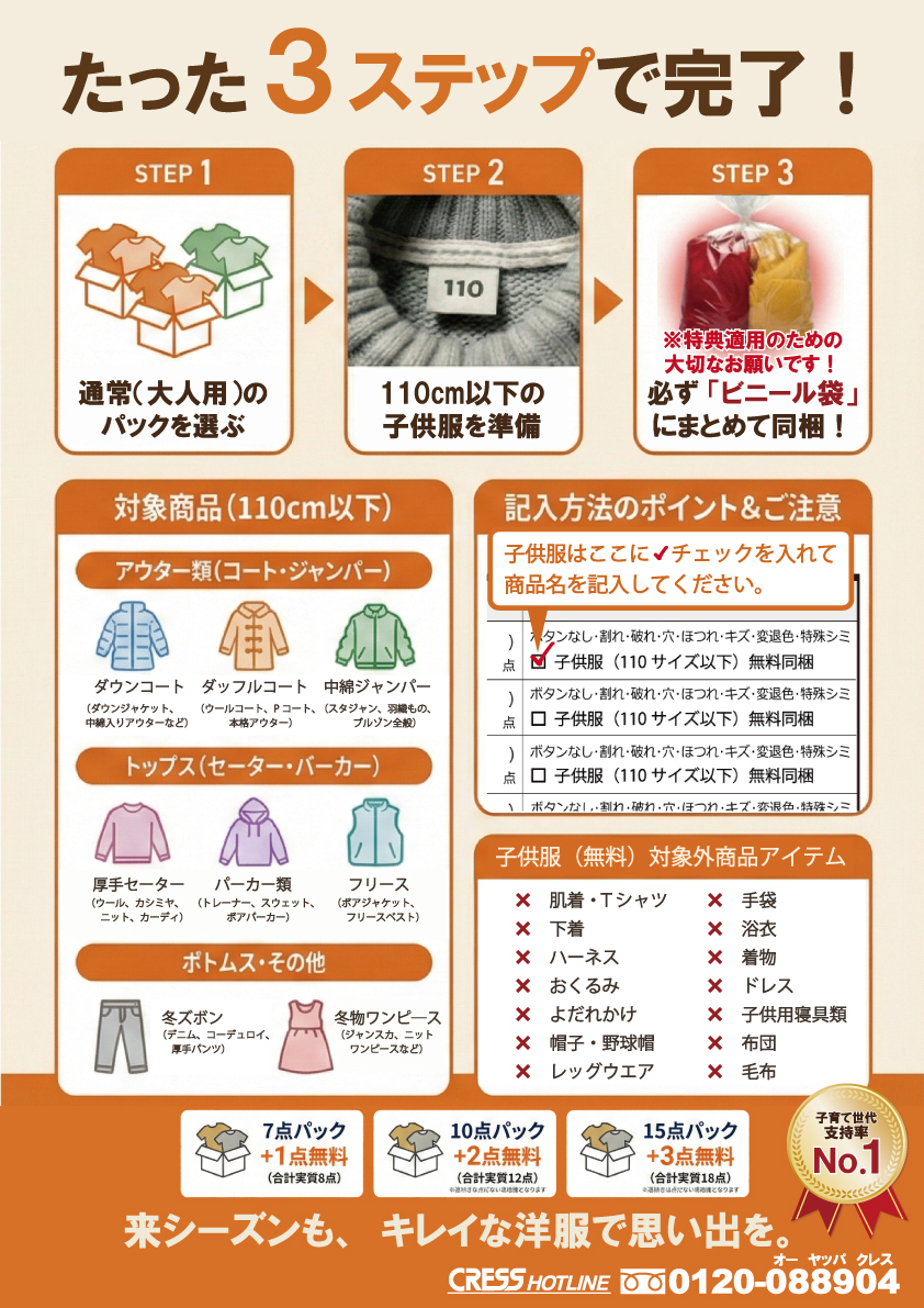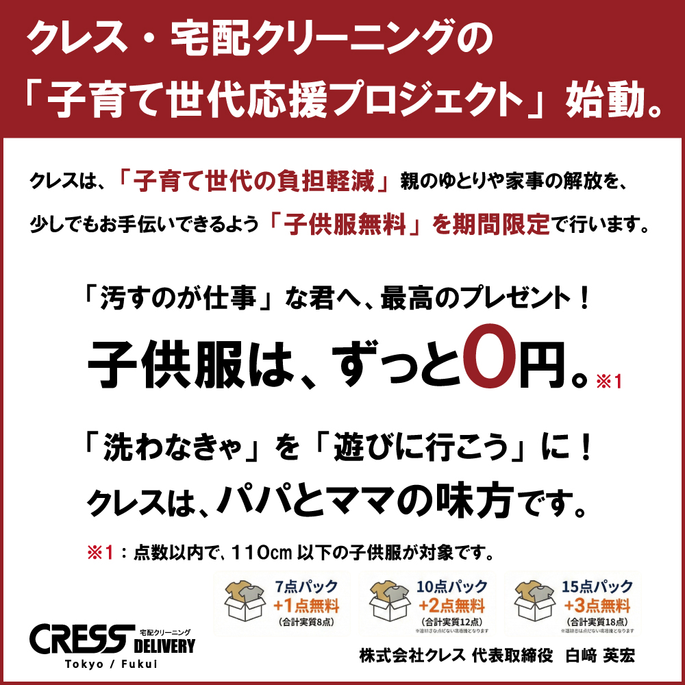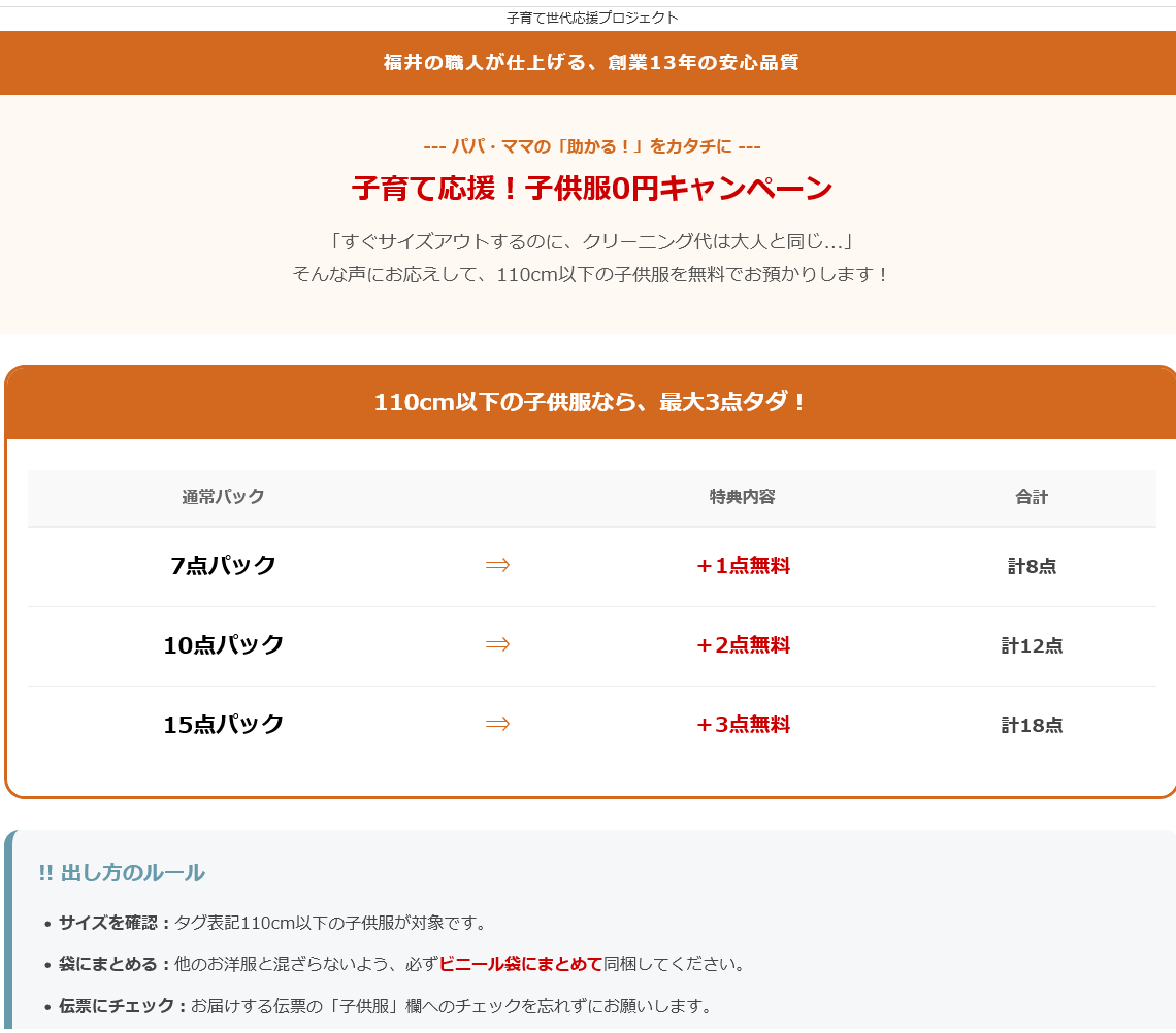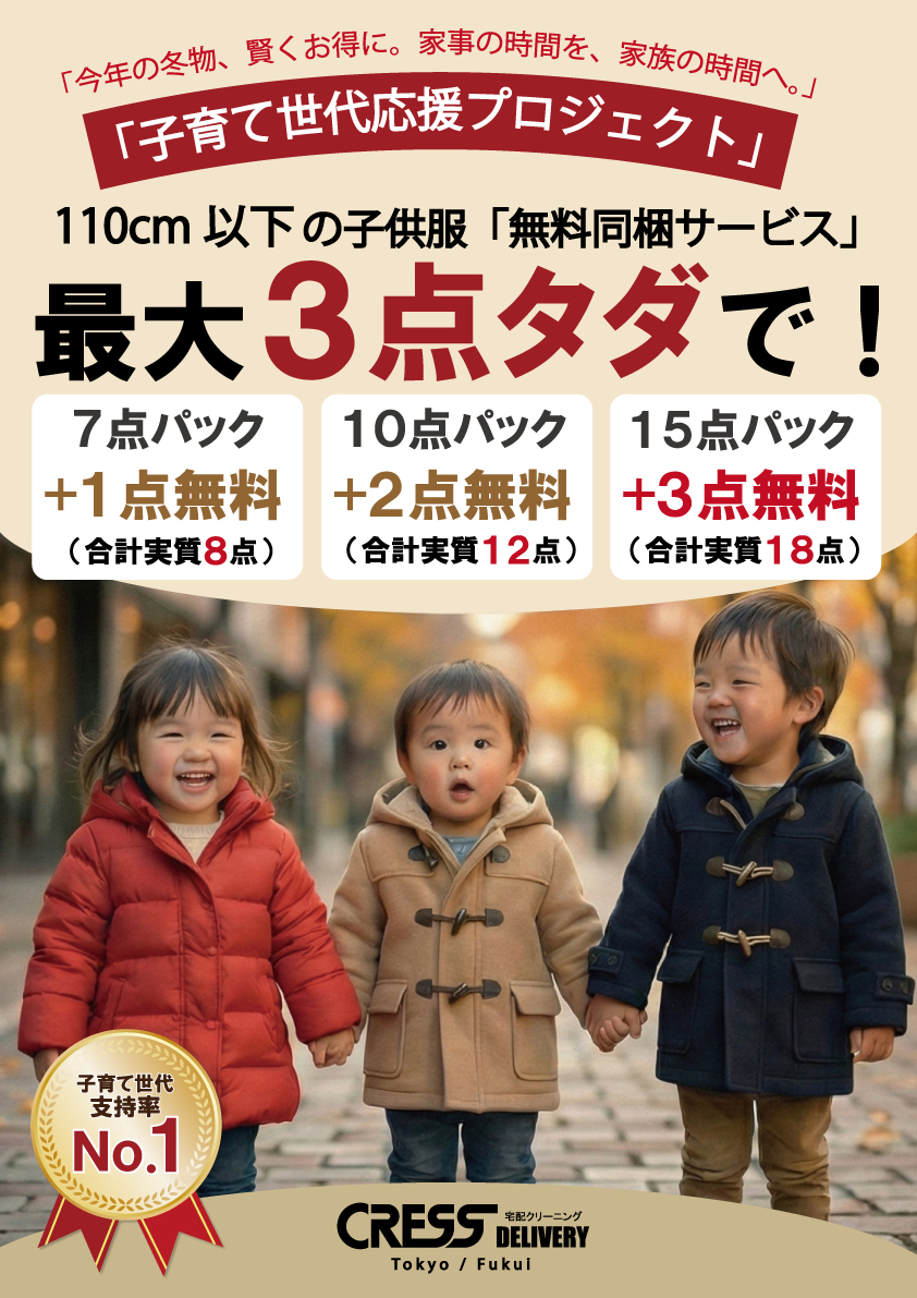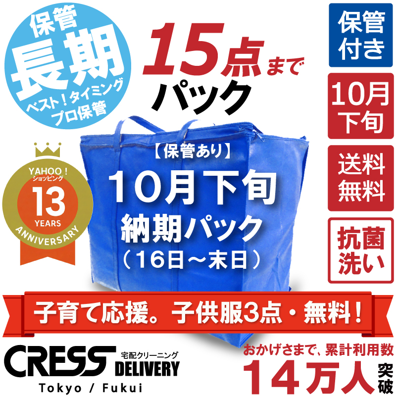 子育て応援企画で子供服3点無料 クリーニング 宅配 保管 15点まで 詰め放題 ダウン クレス 宅配クリーニング 保管あり ボーナスプラス (10月下旬15点)