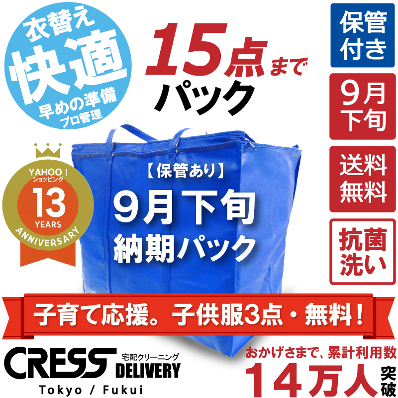 子育て応援企画で子供服3点無料 クリーニング 宅配 保管 15点まで 詰め放題 ダウン クレス 宅配クリーニング ボーナスプラス (9月下旬15点)