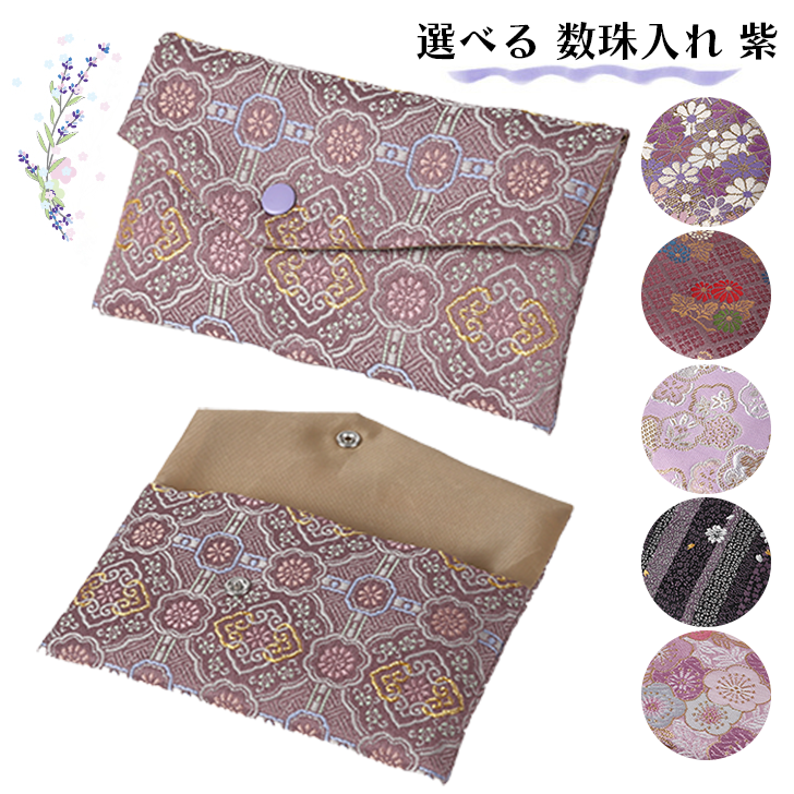 数珠入れ 数珠袋 女性用 男性用 紫・藤 数珠ケース 西陣織 金襴 選べる 念珠袋 念珠入れ 西陣 日本製 京都 9x15cm【メール便発送】