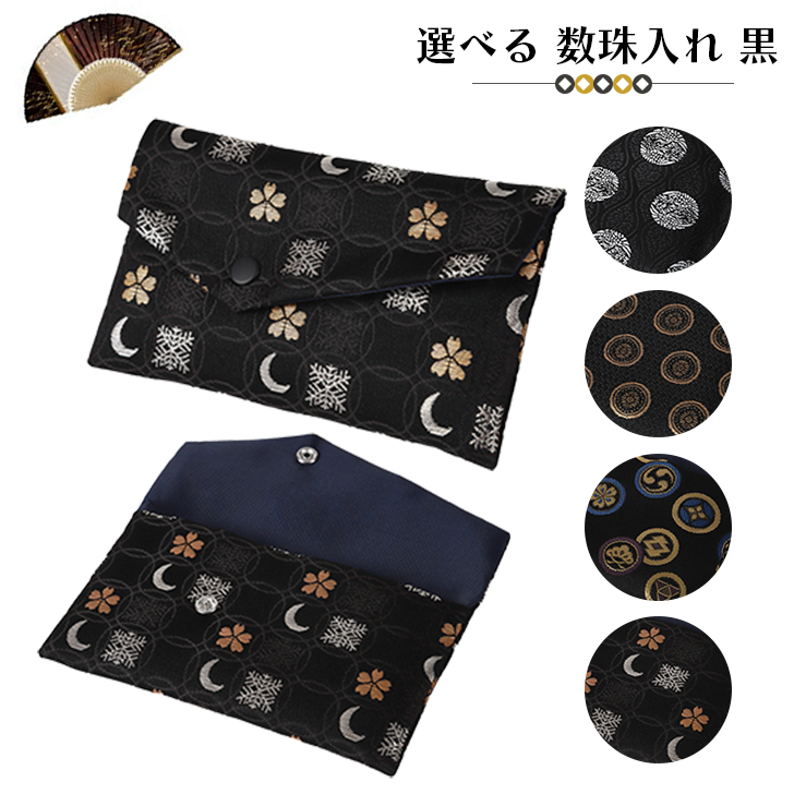 数珠入れ 数珠袋 女性用 男性用 黒 数珠ケース 西陣織 金襴 選べる 念珠袋 念珠入れ 西陣 日本製 京都 9x15cm【メール便発送】