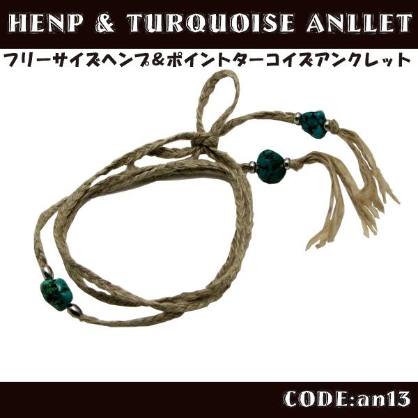 商品詳細:[DM便可]フリーサイズヘンプ&ポイントターコイズアンクレット an13