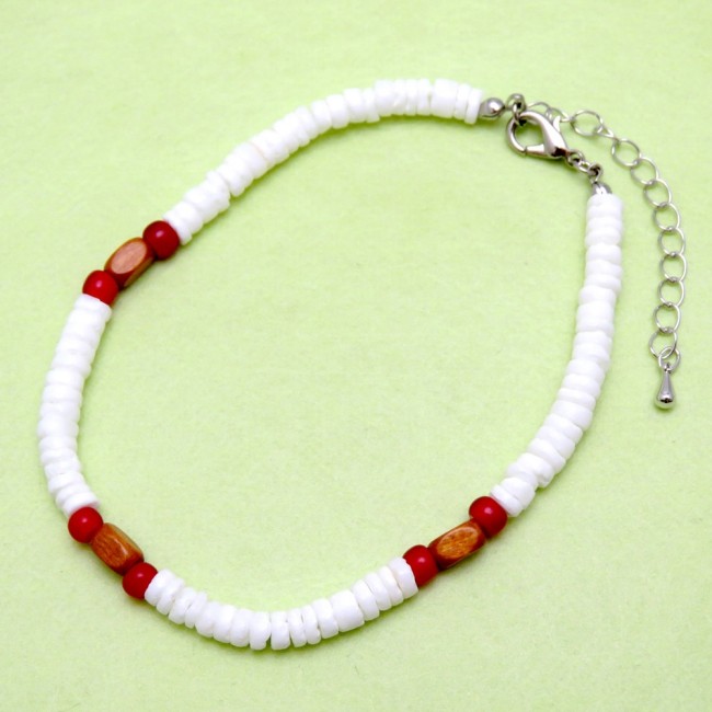 アンクレット シェル ホワイトハーツビーズ コアウッド 国産 日本製 メンズ レディースan152