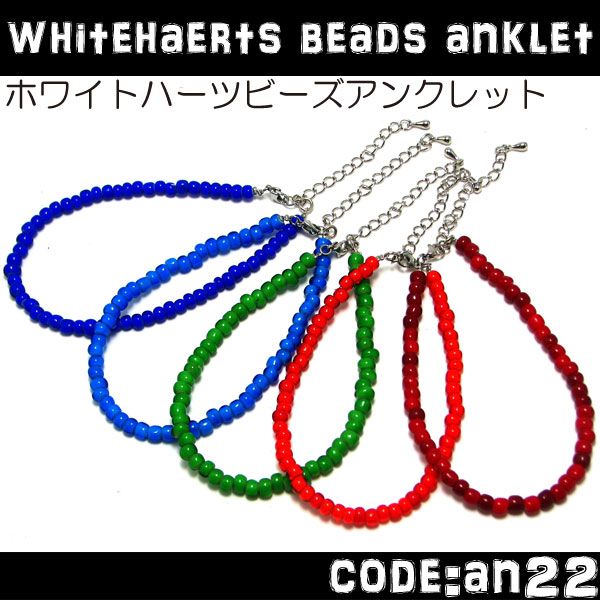 アンクレット センターステッチ ホワイトハーツ ビーズアンクレット メンズ レディース