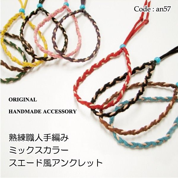 アンクレット 熟練職人 3つ編み ミックスカラー スエード風 レザーアンクレット an57 メンズ レディース