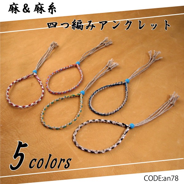 アンクレット 麻 麻糸 四つ編み ヘンプアンクレット an78 メンズ レディース