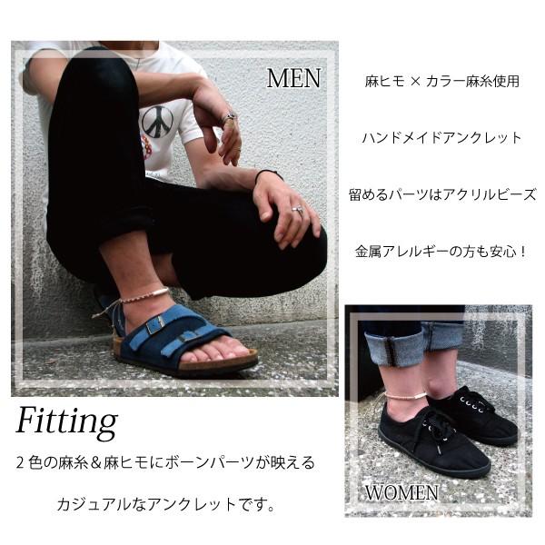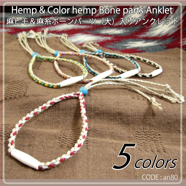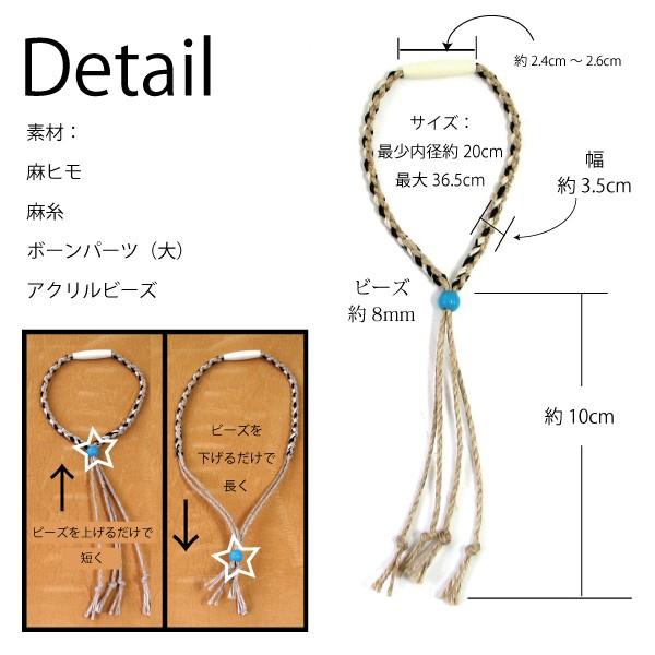 アンクレット 麻 麻糸 ボーンパーツ ( 大 ) 四つ編み ヘンプアンクレット an80 メンズ レディース