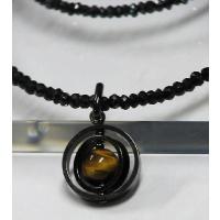 ブラックニッケルメッキトップ パワーストーン「タイガーアイ虎目石」1石 全長:2.5cm フェイス:1.7cm [DM便可]3点まで同梱可能