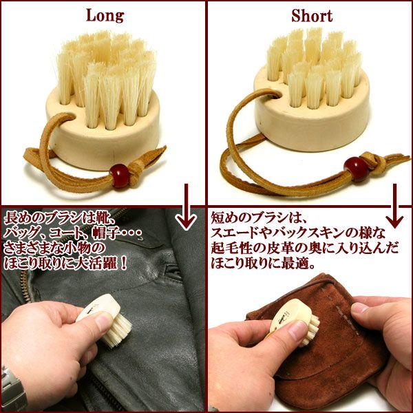 短めのブラシは、スエードやバックスキンの様な起毛性の皮革の起毛・革の間に入り込んだほこり取りに最適。