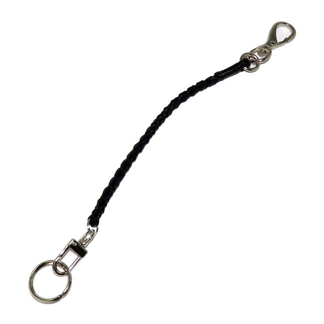 キーホルダー ウォレットコード 短い 全長約270mm 日本製 カナメレザー ヌメ革 丸編み ショート ブラック web151-25