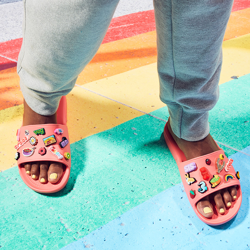 シンプルでオールマイティ。軽くて快適な履き心地のアイコニックコンフォートが特徴のコレクション。ジビッツ チャームでオリジナルの1足にカスタマイズ可能