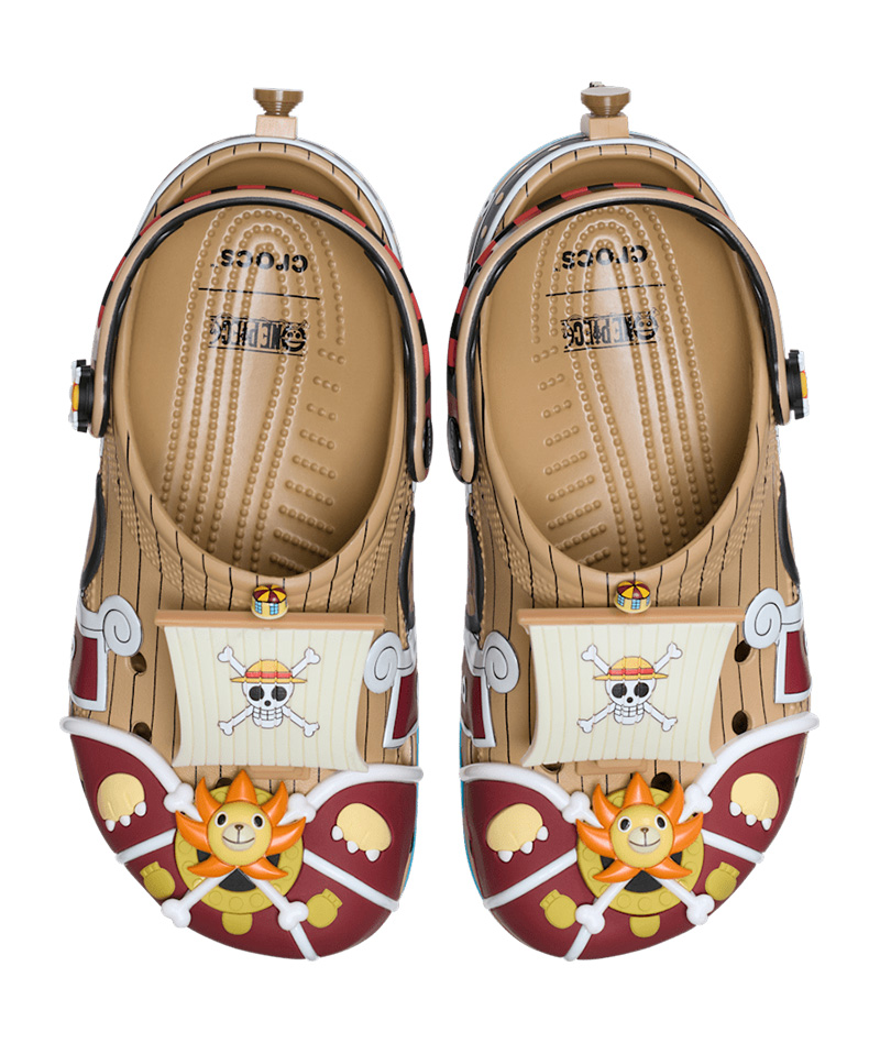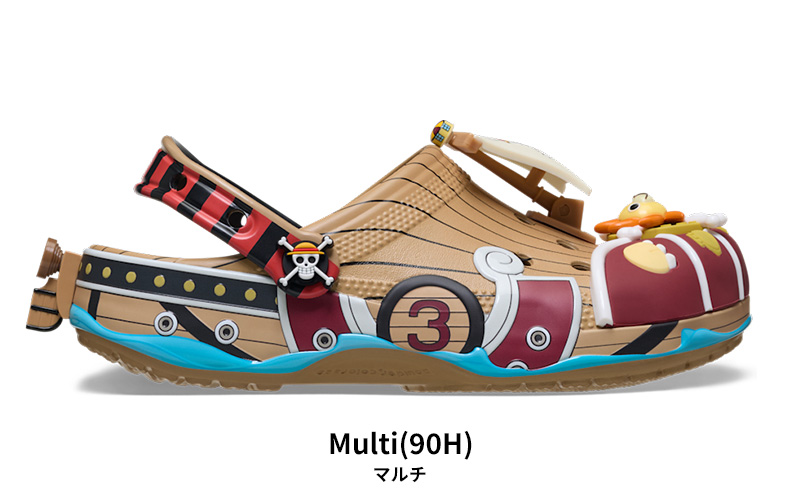 世界的人気アニメ『ONE PIECE』コレクションから、麦わらの一味の船・サウザンド・サニー号をモチーフにした特別仕様のクロックス。