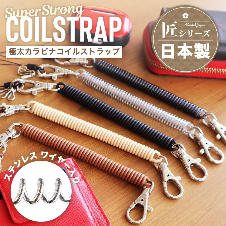 強力な日本製コイルストラップ!ステンレスワイヤー採用で断線に強い安心設計。