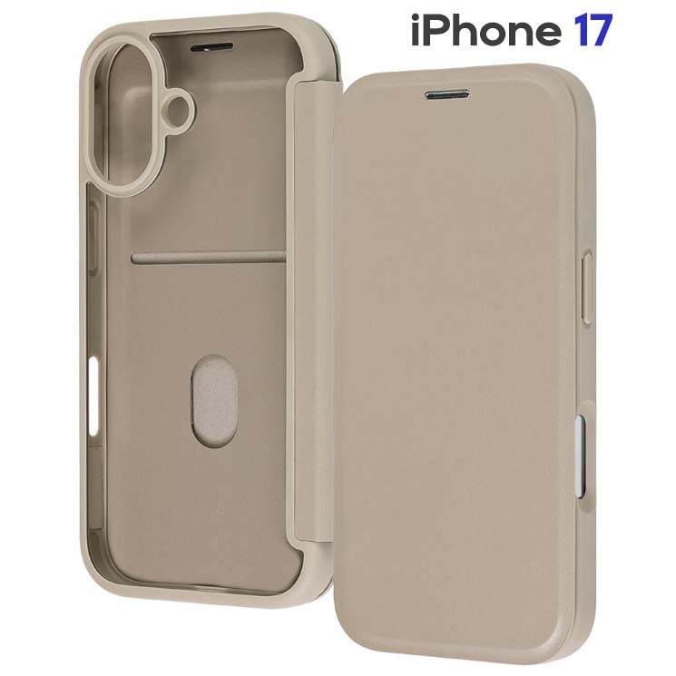 iPhone17 ケース 手帳型 背面クリア ベージュ アイフォン アイホン 17 クリアフリップ マグネット開閉