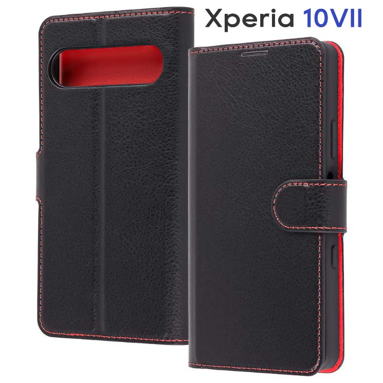 Xperia10VII ケース 手帳型 ブラック レッド 耐衝撃 傷に強い 頑丈 丈夫 強い カード 収納 ポケット ストラップホール スタンド エクスペリア Xperia