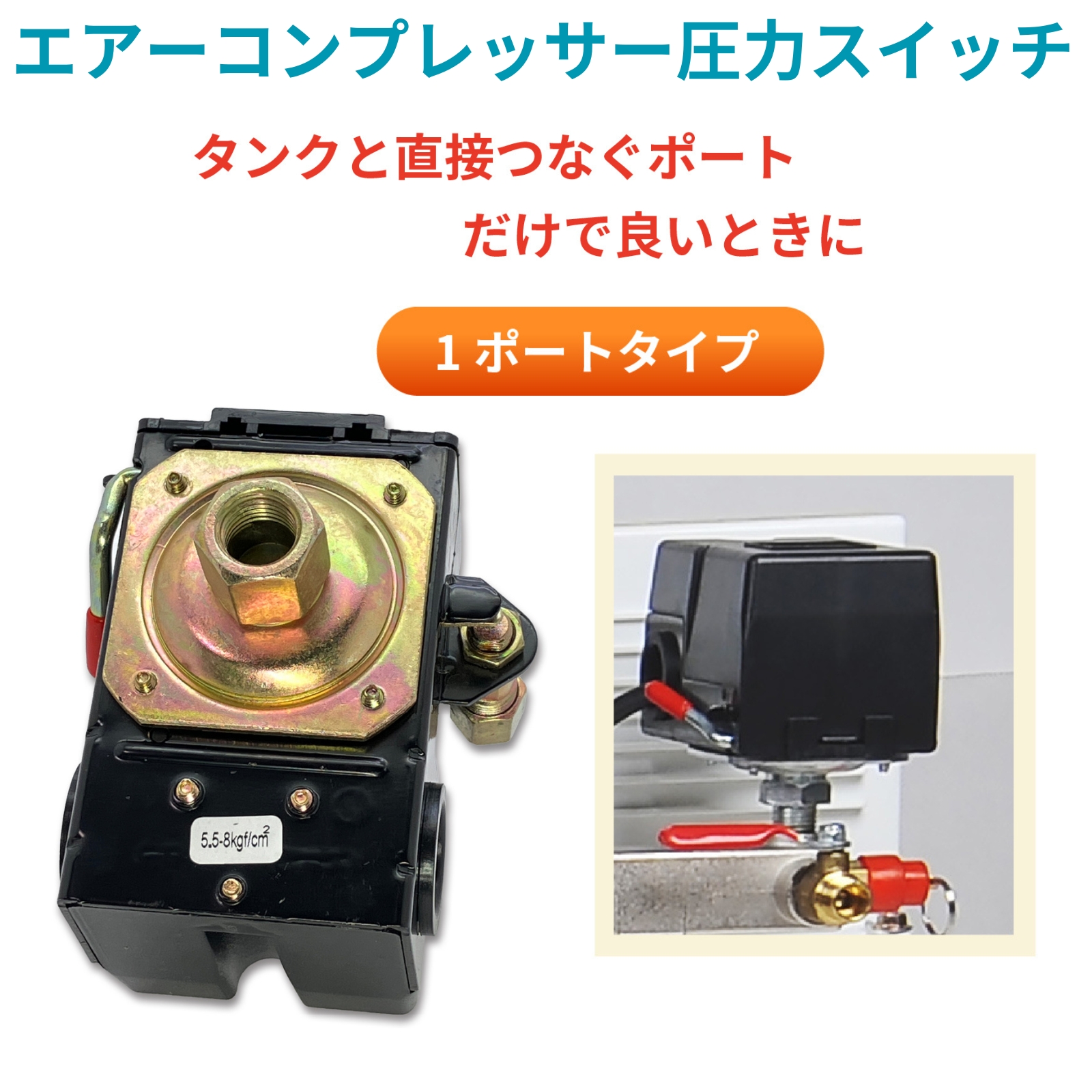 エアーコンプレッサー 圧力スイッチ 1ポート 220V 汎用 交換用 初期値 5.5 〜 8.0 kgf/cm2 (約 0.55 〜 0.8 MPa)