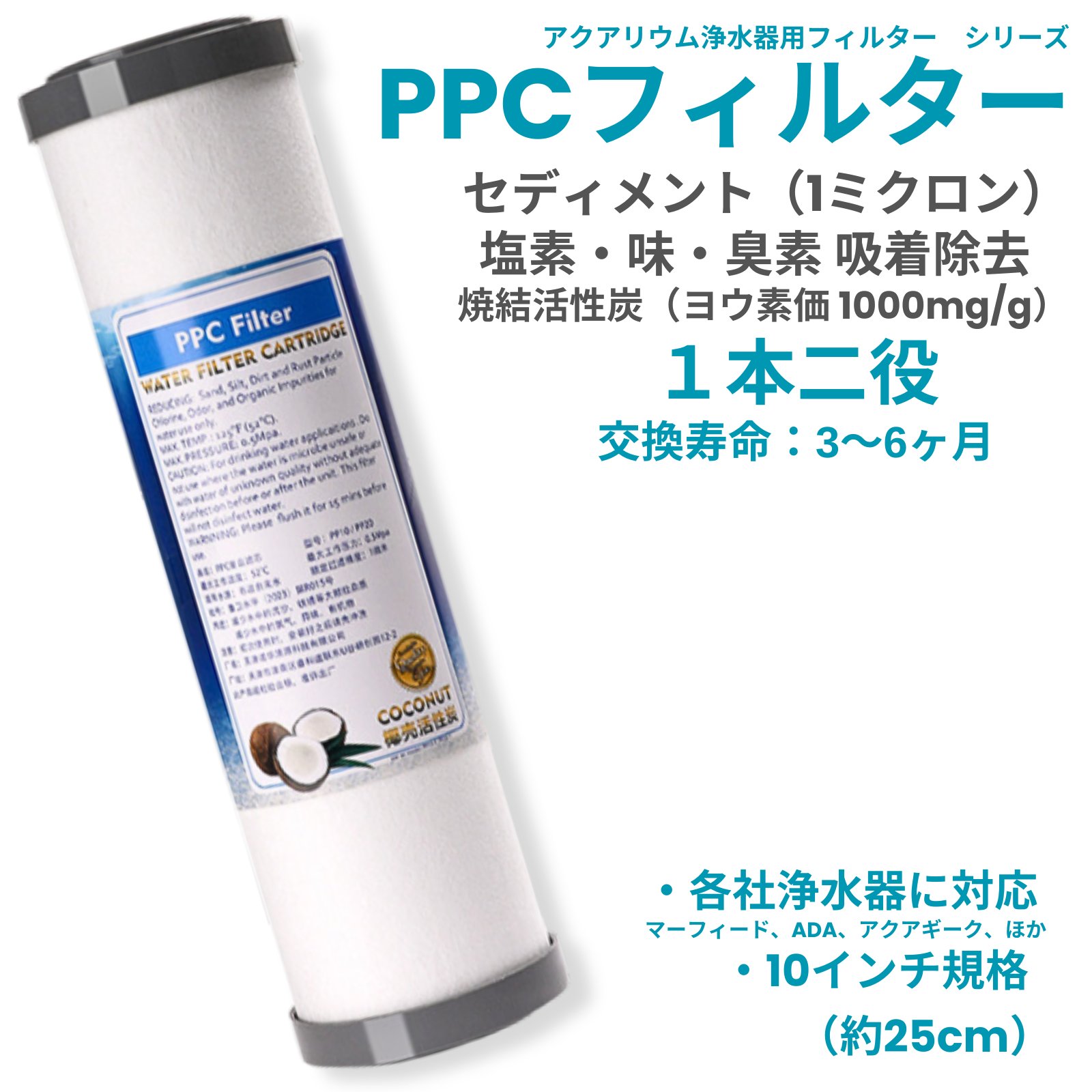 アクアリウム 水槽 浄水器 フィルター PPC セディメント 砂 泥 除去 ヤシ殻 焼結活性炭 塩素 臭い 吸着 10インチ