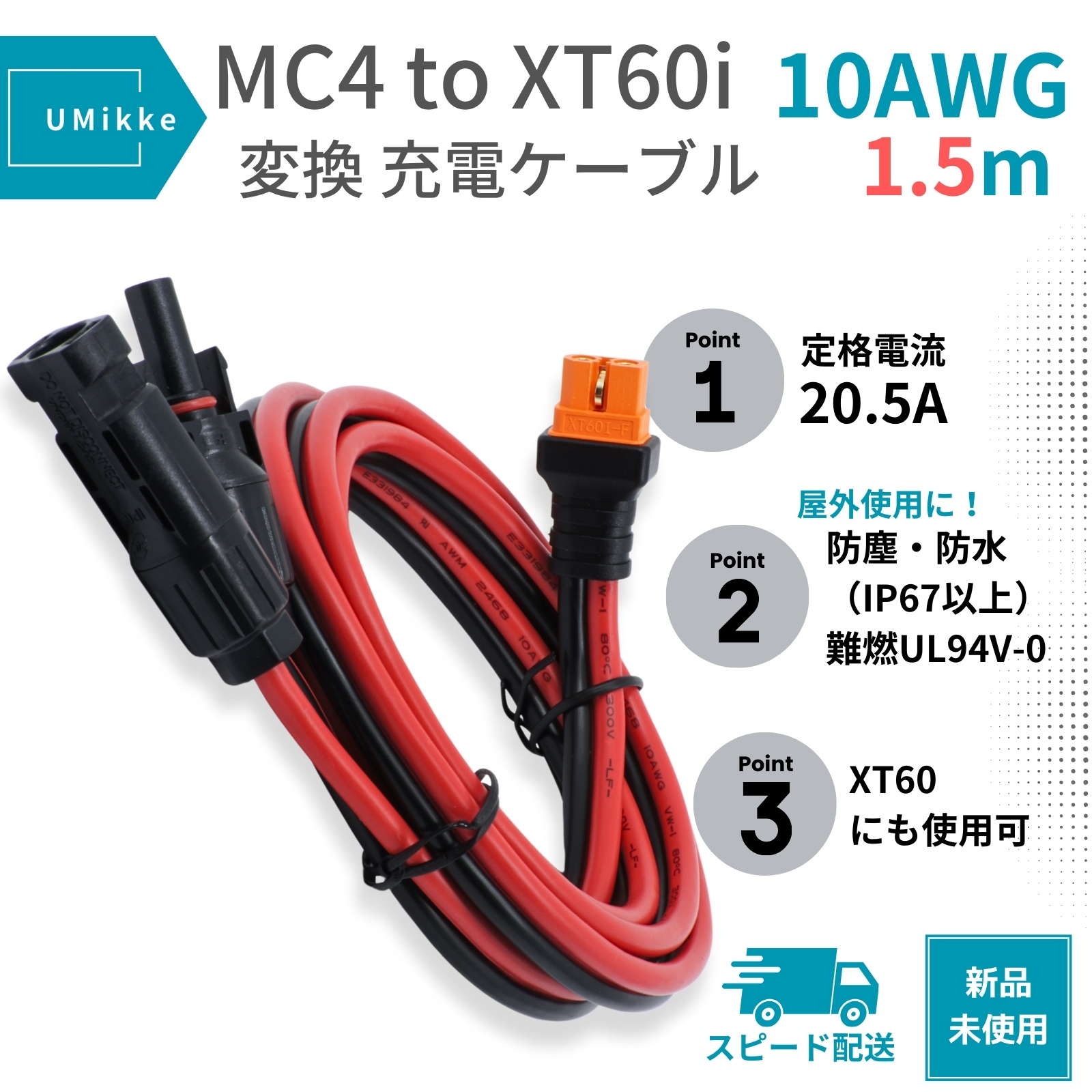 10AWG 20A ポータブル電源充電用ケーブル 1.5m MC4からXT60iポート 太陽光パネル用ケーブル ソーラー充電ケーブル 太陽光発電用