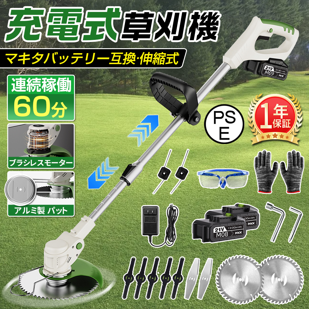 【2025新品】電動草刈機 草刈機 充電式 マキタバッテリー互換 コードレス 伸縮式 長さ調整 家庭用 女性 軽量 無線 安全 草刈り機 芝刈り機 雑草 庭 21v 替刃4種