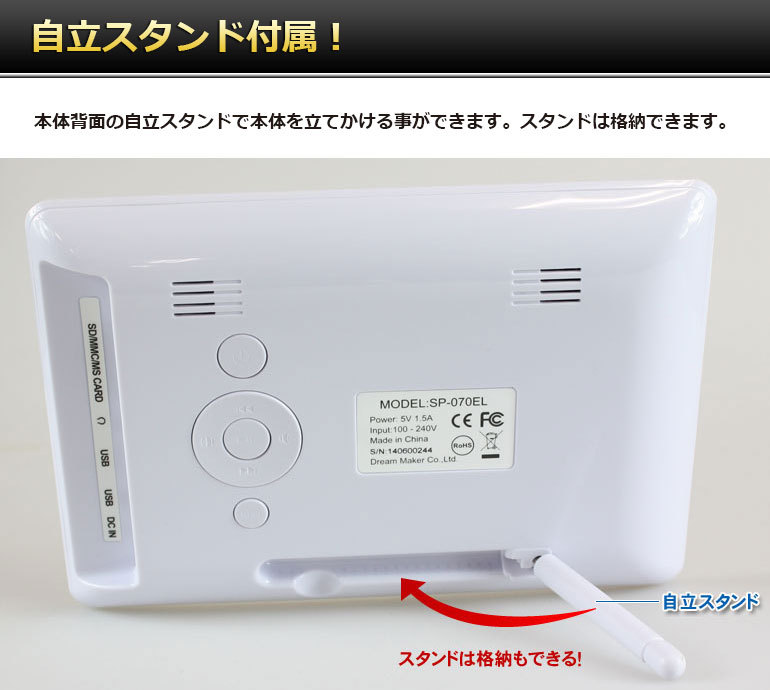 デジタルフォトフレーム 7インチ WVGA液晶 sdカード対応 動画再生 SP-070EL プレゼントにぴったり!のし、ラッピング対応 デジカメ写真を映せる DreamMaker