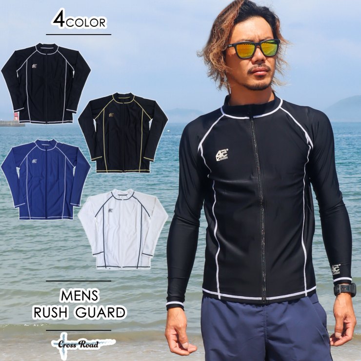 ラッシュガード メンズ 長袖 ジップアップ マリンスポーツ スポーツインナー 保温ウェア 水着 UVブロック 紫外線防止 日焼け防止 リゾート プール 海水浴