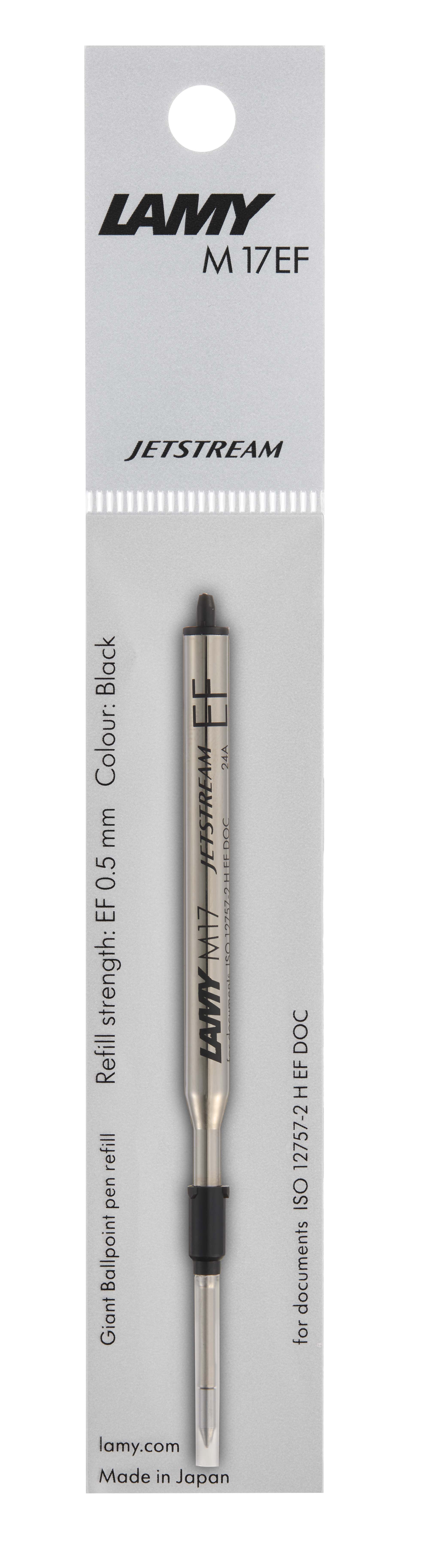 「JETSTREAM替芯 M17」は、LAMYのボールペンにおいて既存で展開しているリフィル「M16」と互換性があり、既にお持ちのLAMYのボールペンに搭載することができます。また、JETSTREAMシリーズでも人気のあるEF(0.5mm)とF(0.7mm)の2種類のボール径をご用意しました。