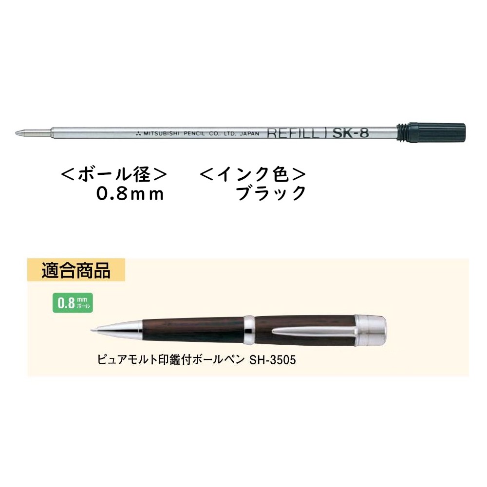 三菱鉛筆 ボールペン ピュアモルト 替芯 油性 ボール径:0.8mm インク色:黒 品番:SK-8 三菱鉛筆(uni) 専門ストア