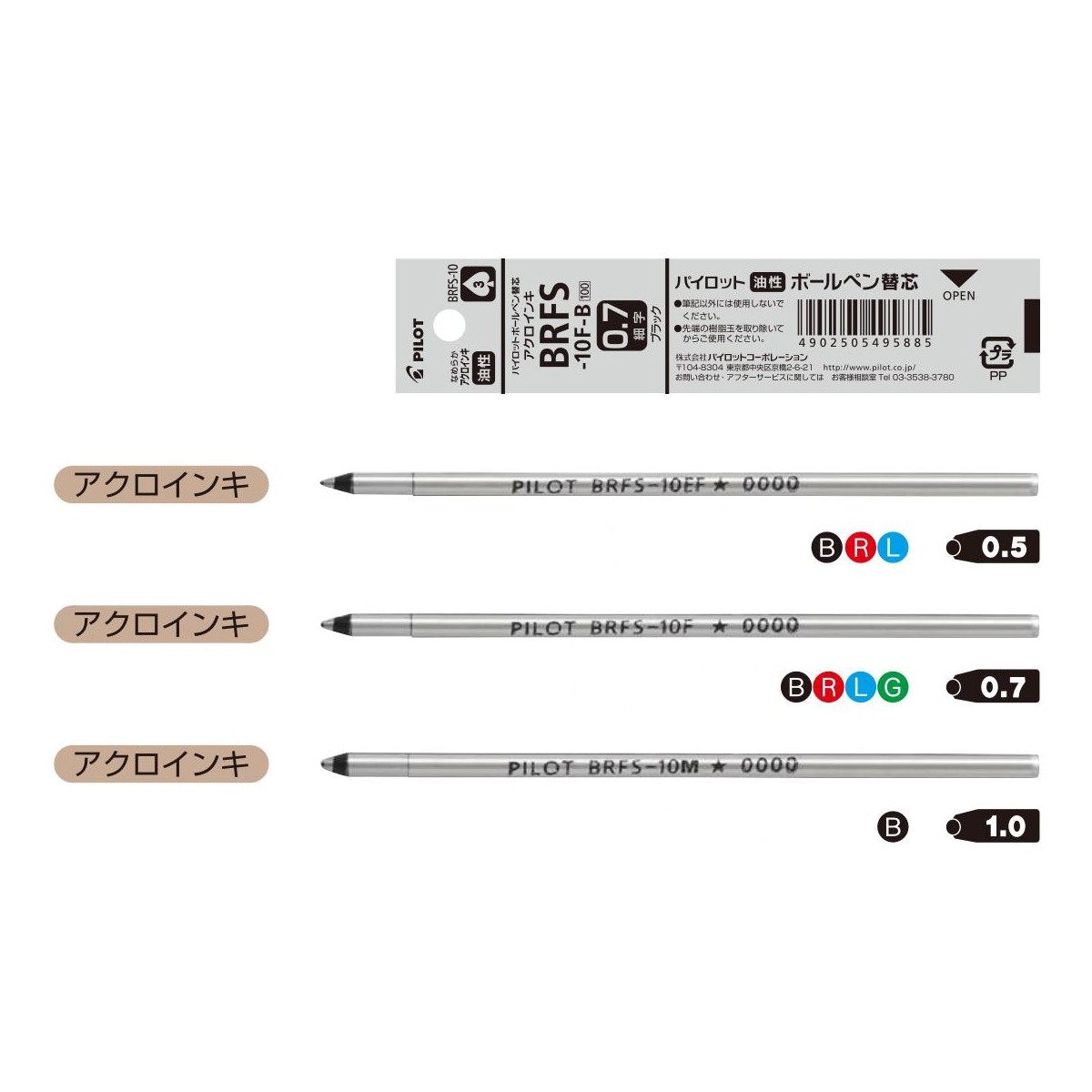 ボールペン替芯 アクロインキ ボール径:0.5mm/0.7mm 品番:BRFS-10 パイロット(PILOT)送料無料 パイロット専門ストア