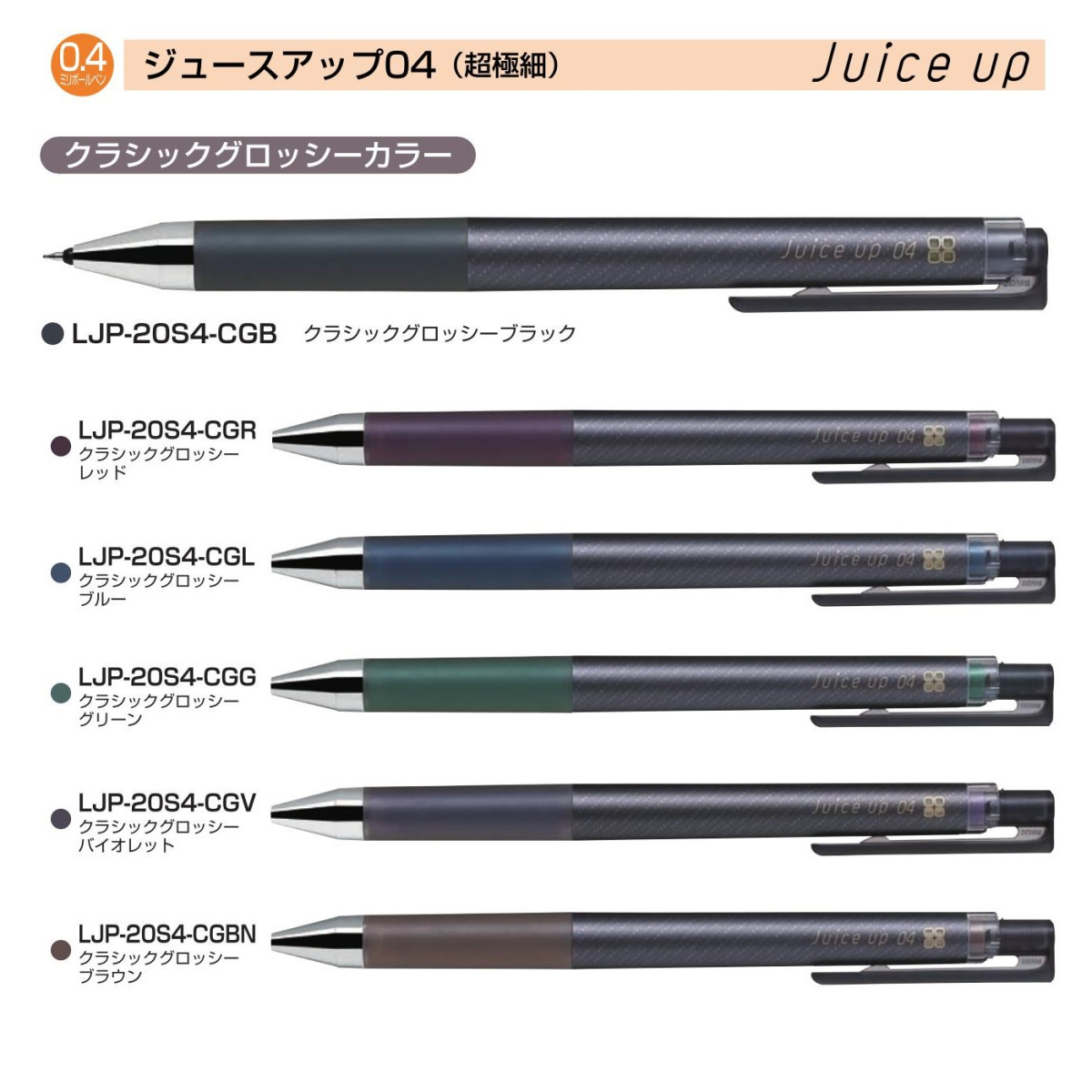 ジュース アップ04 Juice up 0.4mm クラシックグロッシーカラー ボールペン 水性顔料ゲルインキ 品番:LJP-20S4-CG 送料無料 パイロット