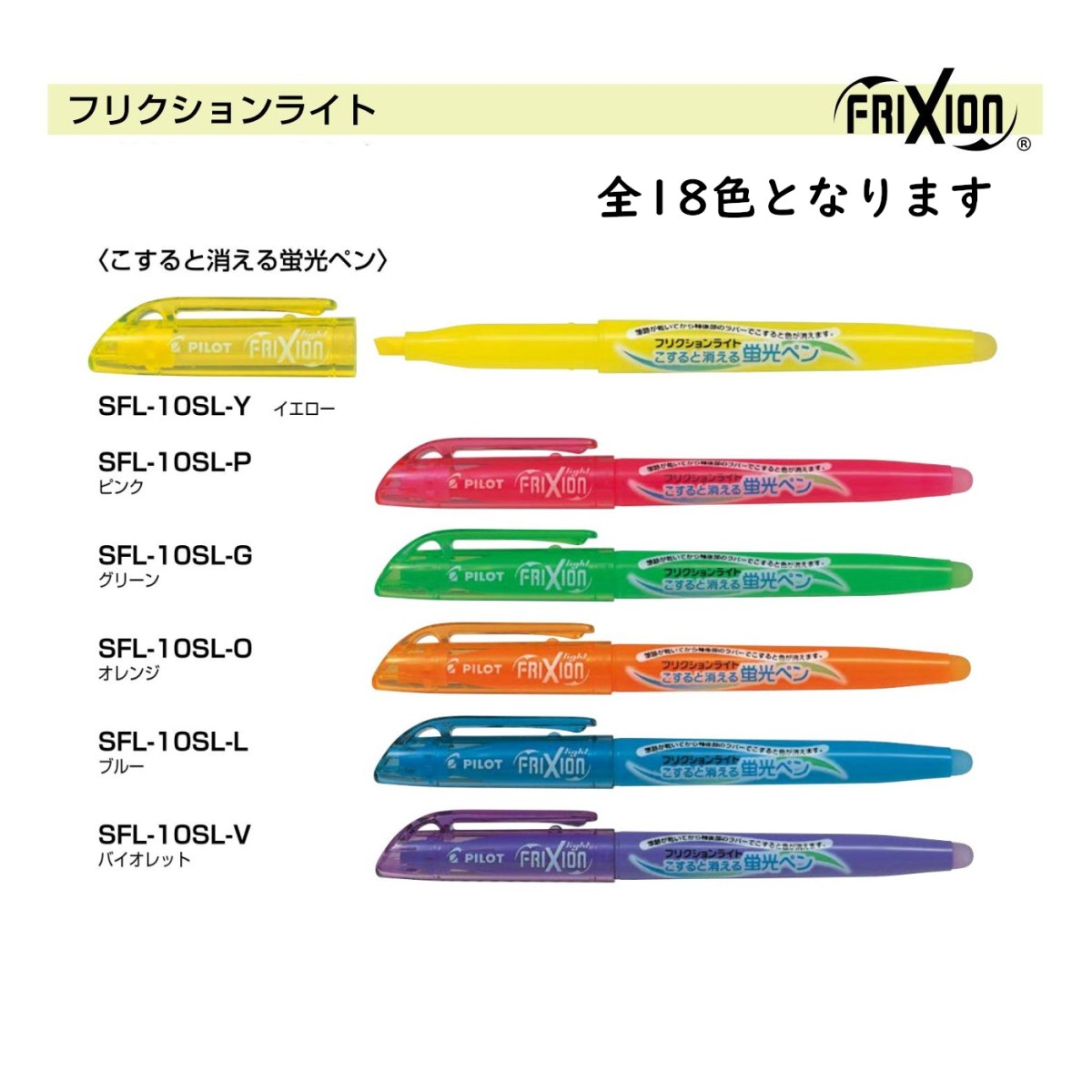 フリクションライト こすると消える蛍光ペン・ラインマーカー 品番:SFL-10SL パイロット専門ストア