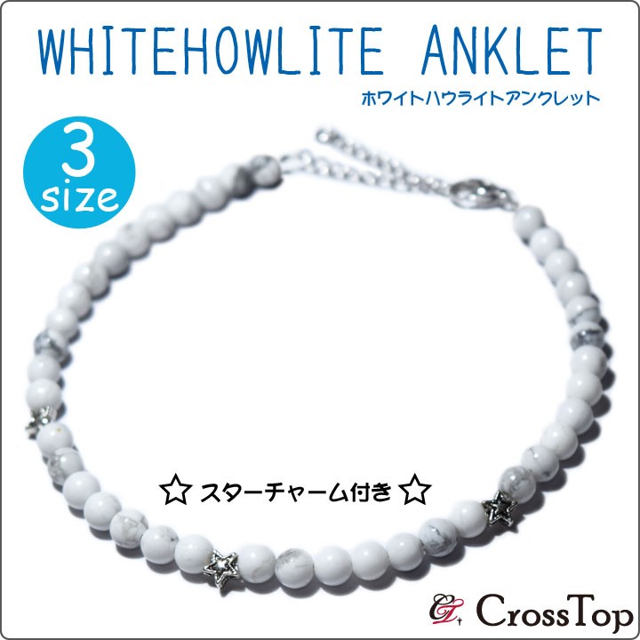 スターモチーフのメタルパーツがワンポイントのホワイトハウライトアンクレットです。