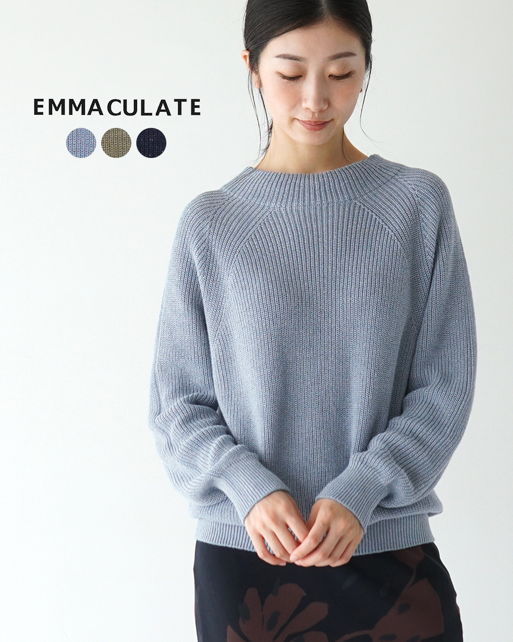 ブランド名のエマキュレイトとは、emma(女性の名前)とimmaculate(純潔な)を組み合わせた造語です。トラッドテイストをベースにしながら、都会的で洗練されたディテールやカラーを加えたセミベーシックスタイルを提案しています。 | |