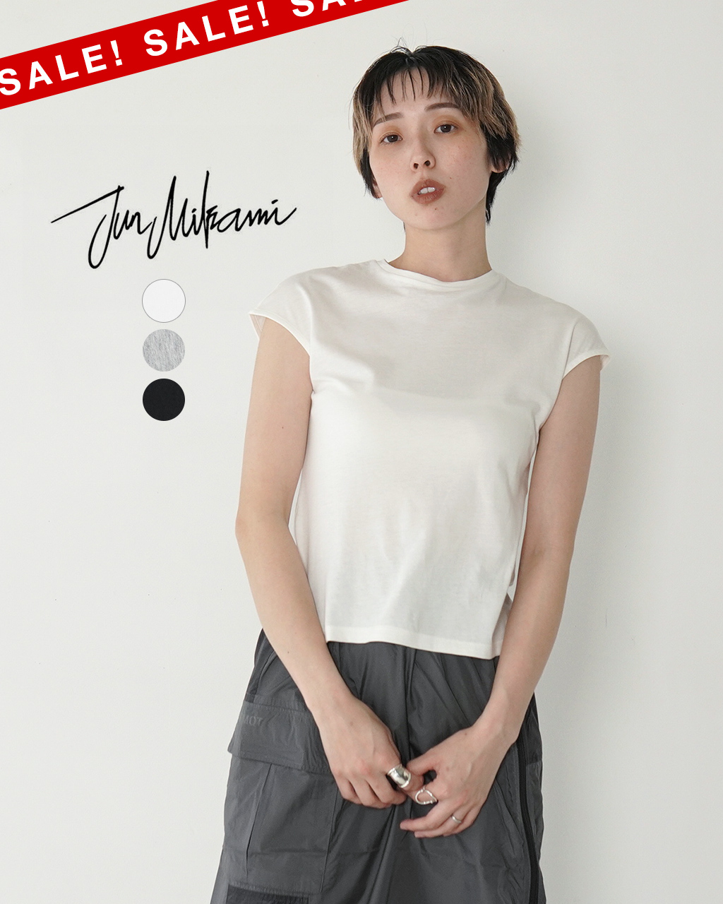 肩をさりげなくカバーするフレンチスリーブと、詰まり気味のネックが絶妙なバランスを生む、JUN MIKAMIの上品なTシャツ。すっきりコンパクトなシルエットで、カジュアルからモードまで幅広いスタイルにマッチ。シックで削ぎ落されたミニマルなデザインが、大人の女性におすすめの一枚です。