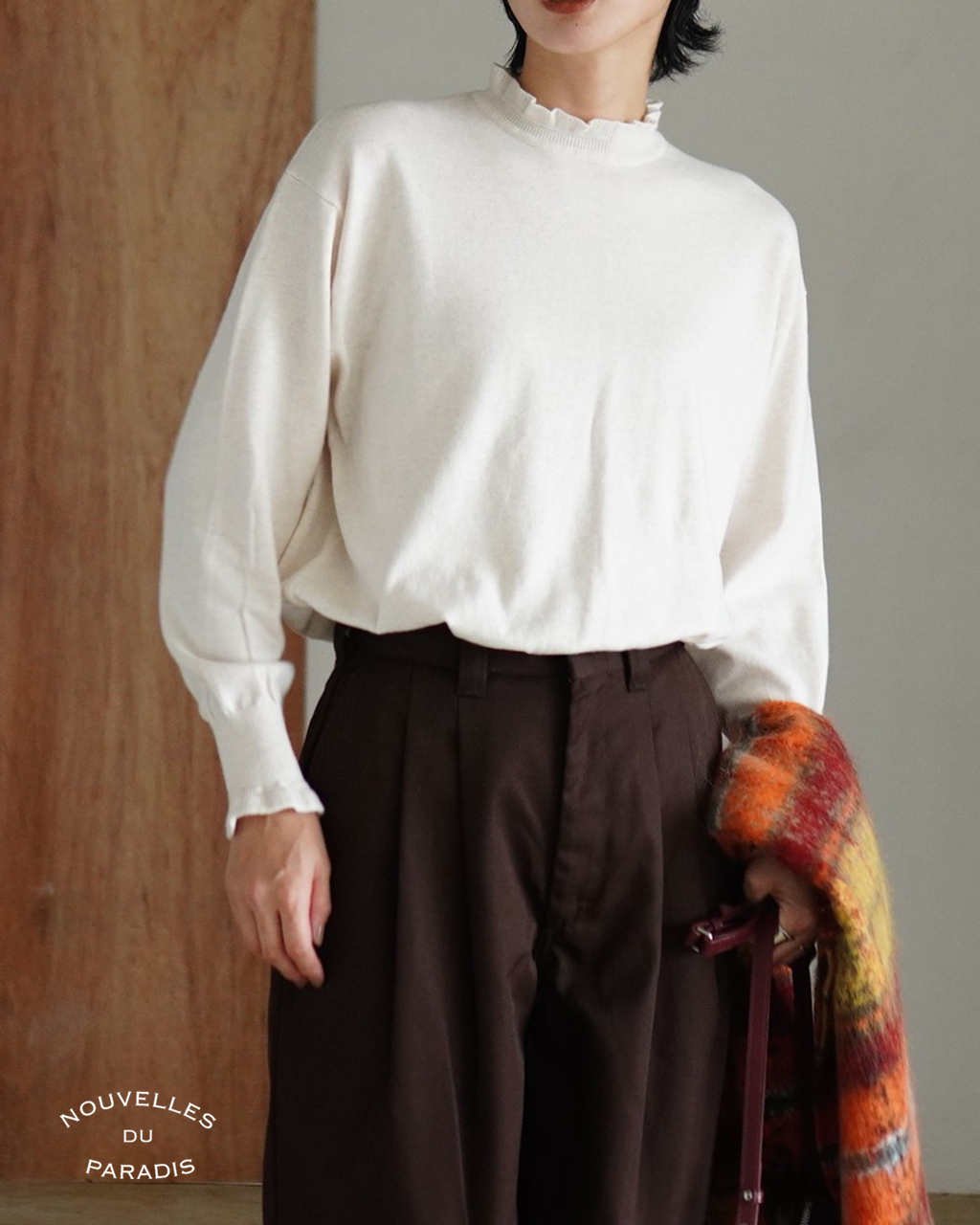 #フリル #ハイネック #洗えるニット #ムーコットン #ふんわり起毛 #軽量ニット