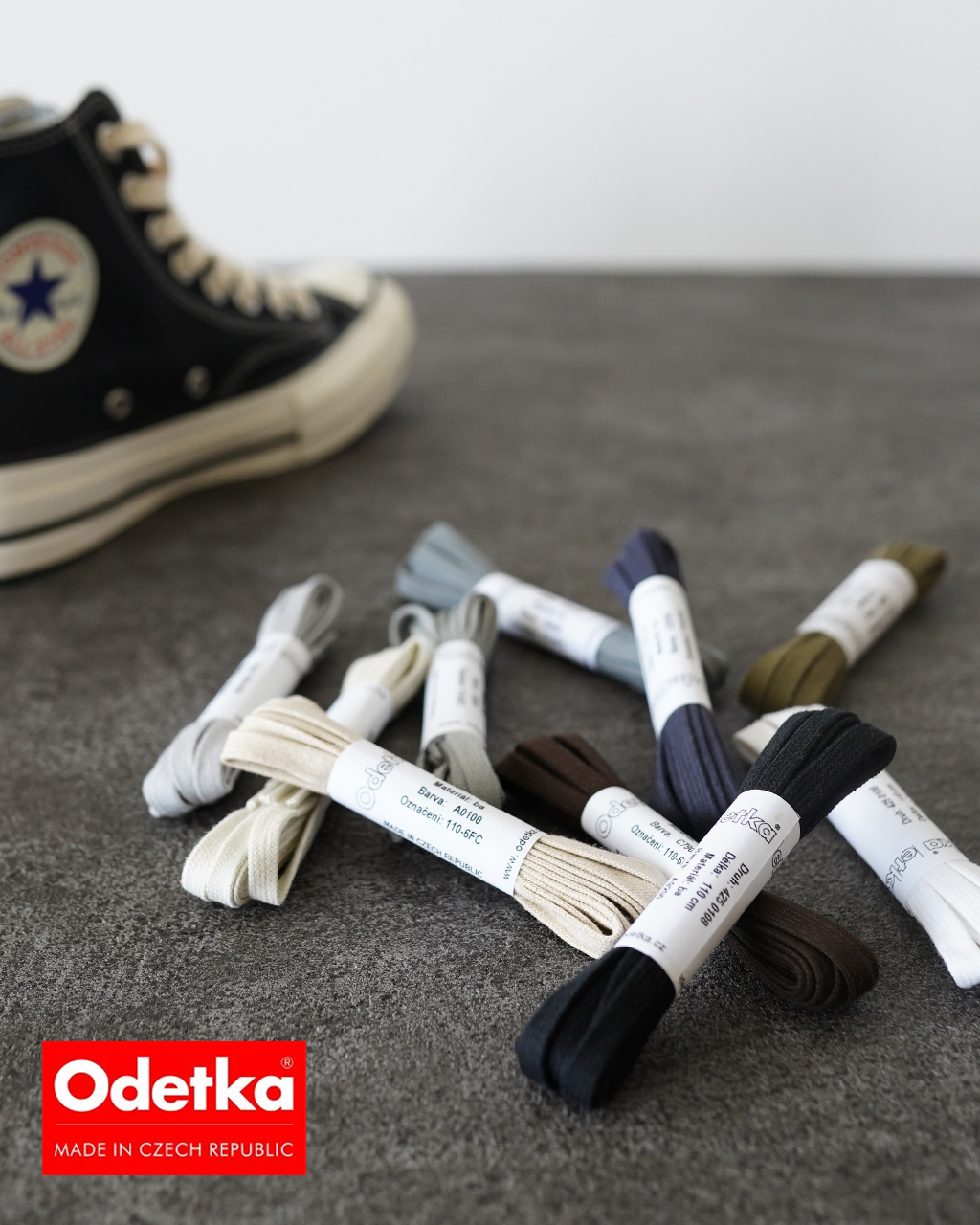 現在のチェコ共和国の東部にあるヴルブノ・ポト・プラジェデムという町で、まだチェコスロバキアだった時代の1800年に設立されたOdetka / オデトカ。200年以上の歴史を持つ老舗シューレースファクトリーより、特別な製作依頼によって実現した6ミリ幅のコットン100%シューレースが届きました。