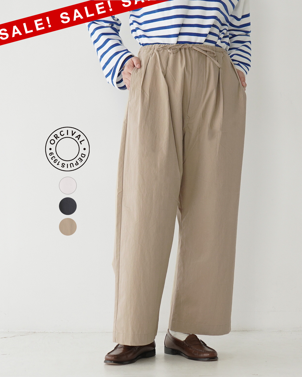 BRAND その他のORCIVALはこちら COUNTRY Made in Vietnam SIZE 1 COLOR IVORY(アイボリー)、BEIGE(ベージュ)、CHARCOAL(チャコール) FABRIC コットン73% ナイロン27% ATTENTION ・こちらの商品はデザインの特性上、裾直しは致しかねます。 LAUNDRY |