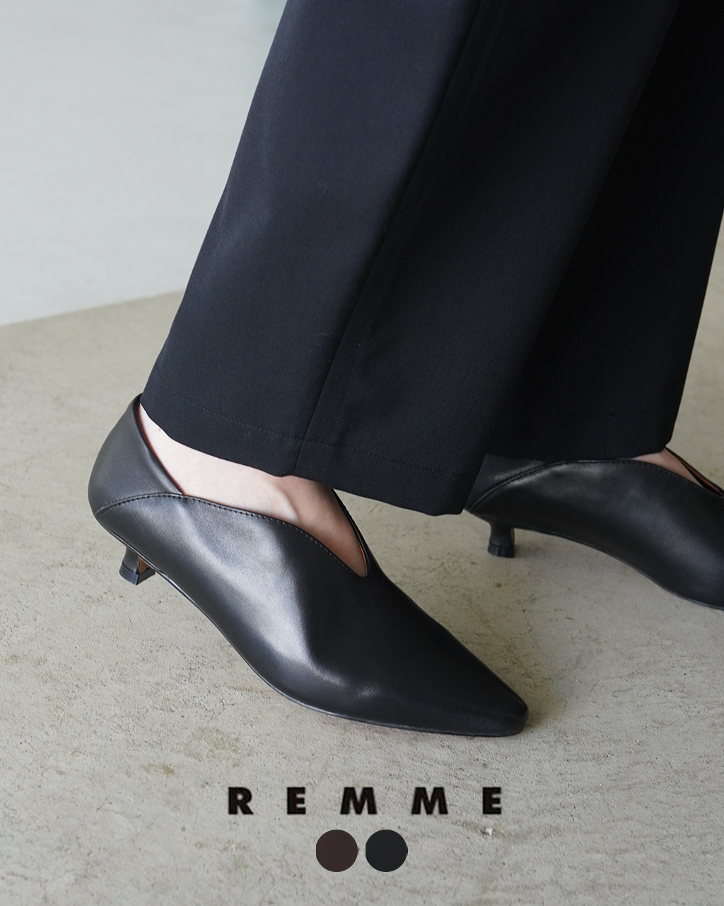 REMMEならではのこだわり抜いたカッティング、抜け感のあるVカットラインが足元をスッキリと美しく見せてくれます。程よくクッション性のあるインソールで歩きやすいつくり。軽快に履けるスリッポンながら、柔らかなシープレザーを採用することで、上品な佇まいに仕上げました。これにより、普段使いはもちろんのこと、オフィスカジュアルにもマッチします。幅広いスタイリングにマッチするシンプルなルックスながら、エッジの効いたデザインがさりげなく個性もプラスしてくれる一足です。
