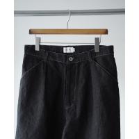 縦糸にコットン、横糸にヘンプを使用した8.5ozのオリジナルデニムでセットアップのパンツを作成。薄手ながらもハリのある素材感がヘンプの特徴で、コットン100%より軽い仕上がりです。デザインはややペインターライクな印象で個性を持たせ、小さなインタックを入れた中太のテーパードシルエット。トップスとのバランスがとりやすいことに加え、カジュアルさの中に上品な雰囲気も感じさせるところが使いやすさのポイント。