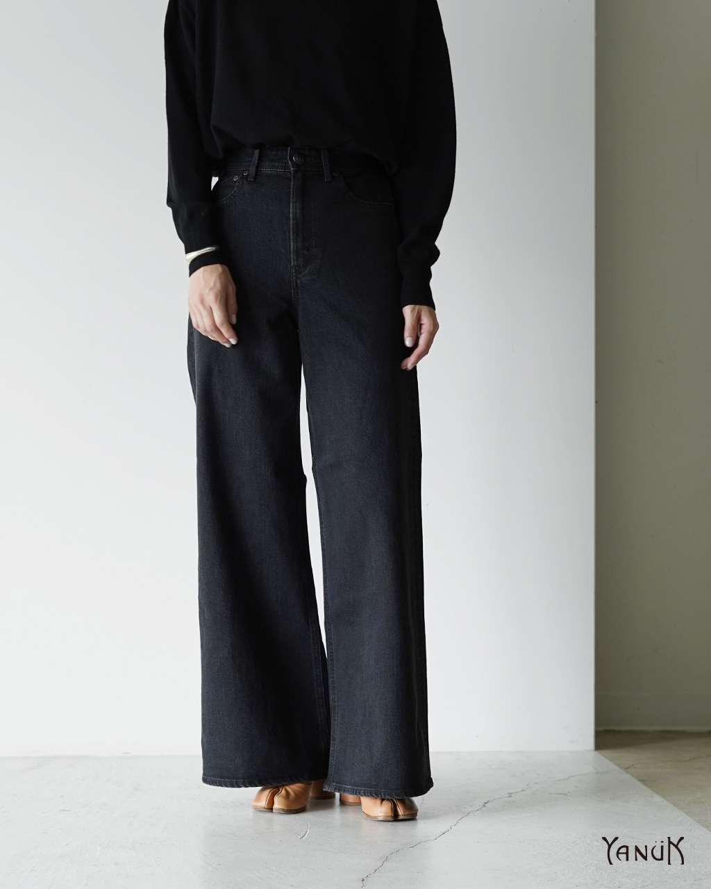 BRAND その他のYANUKはこちら COUNTRY Made in Japan SIZE 23、24、25、26、27 COLOR OBK(オールドブラック) FABRIC <本体>綿98% ポリウレタン2% <革ラベル>牛革 ATTENTION ・こちらの商品はデザインの特性上、裾直しは致しかねます。 ・素材および染色の特性上、水濡れや摩擦により色落ちや色移りが生じる場合がございます。お洗濯や着用時には他の衣類やバッグ、ソファなどへの色移りにご注意くださいませ。 LAUNDRY |
