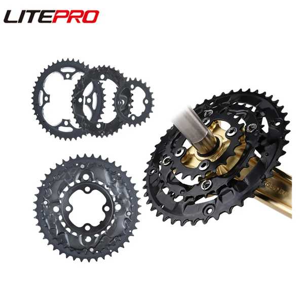 Litepro-マウンテンバイク用のスチール製クランクリング,自転車チェーンホイール,黒,4爪,bcd,64, 104mm, 24, 39, 44t