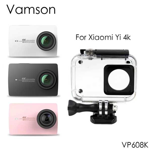Vamson 60メートル防水ケースxiaomi yi 4 18k liteのため保護ダイビング水中ハウジングシェルカバー李4k + カメラアクセサリー