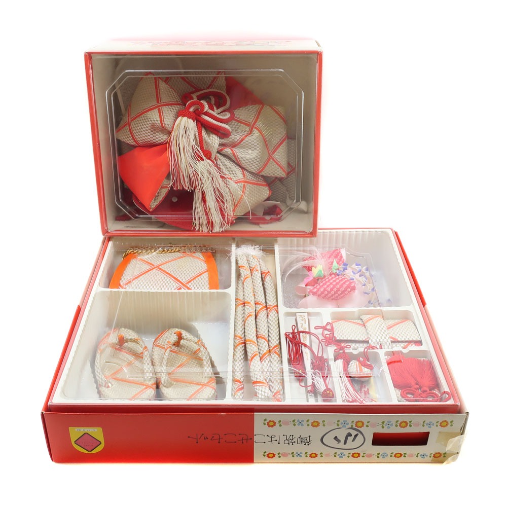 七五三 結び帯 筥迫(はこせこ)セット 3-5歳 和装 ホワイト/オレンジ キッズ【M191125001】中古