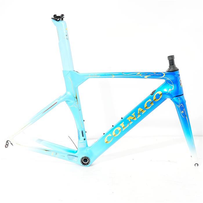 ![]() ■COLNAGO (コルナゴ) エルネスト・コルナゴによって設立されたイタリアンバイクブランド。エルネスト自身は落車による 骨折で選手生命を絶たれたが、「史上最強の選手」と後に謳われることになるエディー・メルクスに自作のフレームを提供したのが、ブランドの始まりである。 日本を代表するロードレーサーである新城幸也選手も2010年にCOLNAGOのバイク供給を受けツール・ド・フランスではステージ6位入賞を果たしている。 ■ 2017-2021 CONCEPT NJDBカラー フレームセット 各チューブにNACAウィンドシェイプ形状を使用したコルナゴのエアロロード。 UAEチームエミレーツとともにビッグレースでの実績も充分。 空気の抜けの良さを考慮したフレーム形状は大き目のクリアランスを持ち28Cタイヤの装着も可能。 ヘッドセットに衝撃吸収素材を使用するなど長距離を走り切る快適性にも配慮。 パマ・ペイント社によるグラフィックも美しい、存在感のある一台です。 ■スタッフおすすめポイント シートポストに僅かに擦れがございますが全体的にはとてもきれいな状態です。 芸術品ともいえるデザインを纏ったエアロフレーム。 コルナゴのレースへの情熱が反映され空力性能はもちろんですが高い剛性を誇るダウンチューブからくる振動を、エラストラマーからなる高分子化合物で成形されたヘッドパーツで吸収することで見事に高次元でのバランスを発揮。 リアセク ションの絶妙なしなりから鞭のようなパワーが生まれ、ペダリングパワーと融合し伝達される。 アタックからの高速域への加速感を堪能できるフレームです。 ■スペック ・状態:良上品 ・フレーム素材:カーボン ・フォーク素材:カーボン ・シートチューブ長 (C-T): 515mm ・トップチューブ長 (C-C): 519mm ・コラム残 (ヘッドパーツ上端): 57mm ・ヘッドチューブ長: 125mm ・適応身長:159-168cm ※適応身長の数値はあくまでも目安です。 ・重量(フレーム+フォーク): 1900g ・FDタイプ: 直付 ・BB規格:スレッドフィット82.5 (現在ウルトラトルク用BBが圧入されています。) ・シートポスト径:専用 ・最大サドル高(BBセンター〜シートレールセンター): 740mm ※ISPまたは専用ポストの場合は記載※ ・Di2(EPS)対応:対応 ・エンド規格: クイックリリース ・エンド幅: F 100mm R 130mm ・付属品:無し ・備考(特記事項や欠品情報など):Di2(EPS)用グロメット無し ![]() ■商品画像について 商品画像の掲載点数が限られるためキズ、スレなどを撮影した画像が漏れてしまう可能性があります。弊店自社ページにてより多くの画像を掲載しておりますので画像の確認につきましてはそちらをご参照いただけますようお願いいたします。 弊店自社ページ上部の検索窓にて13桁の商品番号で検索していただくと当該商品の詳細情報をご覧いただけます。 |