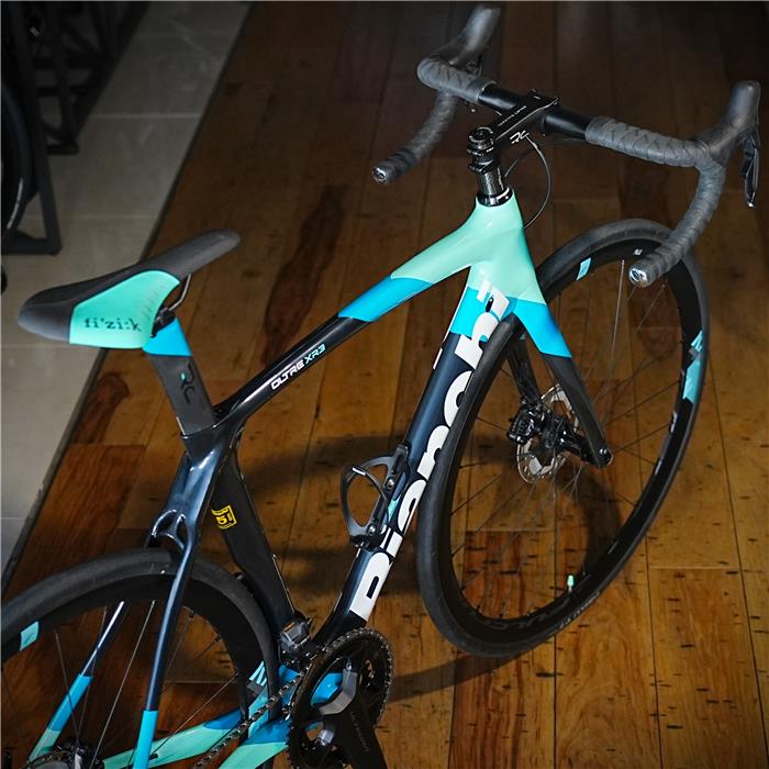 ■Bianchi (ビアンキ) 現存する自転車メーカーで最も古い歴史を持つBianchi。 青空を意味する美しいブランドカラー『チェレステ』は、職人が毎年ミラノの空の色を見て決めるという説や、マルゲリータ王妃の瞳の色をイメージして作られた説などがあります。 伝説的クライマー マルコ・パンターニを始めとする数多くのチャンピオンたちと共に栄光を築き上げてきたイタリアの老舗ブランドです。 ■スタッフおすすめポイント 【フレームセット】2022モデル OLTRE XR3 Disc 550サイズ(175-183cm) 全体的にきれいな状態の美品です。 ハイエンドモデルの技術を引き継いだオールラウンドモデル。 フレームのカーボン素材にはにCV(カウンターヴェイル)という独自の素材を取り入れており、剛性と強度を向上させながらも振動を最大80%除去しており、振動吸収性を向上させばがらも軽快な走りが特徴となっています。 空力性能に軽量性、カウンターヴェイルによる乗り心地など、どのような状況でもオールラウンドに能力を発揮するバイクです。 ■【コンポーネント】SHIMANO ULTEGRA Di2 デュラエースに次ぐセカンドグレード。プロレースに実戦投入されているDURA-ACEシリーズのテクノロジーを継承しています。 Di2は電子制御によるスムーズな変速を特徴とし、後ギアの位置関係に応じてフロントディレーラーが自動変速するシンクロシフトなどの先端技術を採用しています。 スイッチ操作による変速は疲労やストレスを抑え、ライディングに集中する環境をつくり出します。 【ホイール】FULCRUM RACING400 チューブレス対応 メーカー完成車にも採用される信頼度の高いホイールセット。 35mmのリムハイトは空力性能にも優れていますが、上りもこなすオールラウンドな仕上がりです。 リム幅を17mmにすることで主流の25cのタイヤに最適な仕様になっています。 【リムタイプ】チューブレスレディ パンクに強く、乗り心地に優れる規格 タイヤ自体に気密保持層があるチューブレスタイヤとは違い、チューブレスレディタイヤには気密保持層がなく、専用のシーラントによって気密を保ちます。 リム打ちパンクが発生しないことで低圧運用できることや、チューブによる内部摩擦がなくなる等の理由により、チューブドタイヤと比べて乗り心地が大きく向上します。 また、パンク時のエア漏れに反応して穴を塞ぐシーラントの特性により、パンク時に急激にエアが抜けてタイヤが脱落してしまうリスクが少ないという特徴もあります。 パンク時にはクリンチャータイヤのようにチューブを入れて復帰できる点も大きな魅力です。 ■スペック ・状態:美品 ・フレーム素材:カーボン ・フォーク素材:カーボン ・リム素材:アルミ ・ハブ素材:アルミ ・メインコンポーネント:SHIMANO R8170 Di2 2x12S ・トップチューブ長(C-C):550mm ・シートチューブ長(C-T):520mm ・ヘッドチューブ長:140mm ・最大サドル高:810mm ・サドル高(写真撮影時の状態):735mm ・適応身長:175-183cm ※適応身長の数値はあくまでも目安です。 ・重量:8.3kg ・付属品:Di2充電器付属 ■パーツ構成 ・レバー:SHIMANO ST-R8170 ・ブレーキ:右前 ・フロントディレーラー:SHIMANO FD-R8150 直付 ・リアディレーラー:SHIMANO RD-R8150 ・クランク:SHIMANO FC-R8100 170mm 50/34T ・ブレーキ:SHIMANO BR-R8170 ・スプロケット:SHIMANO CS-R8100 11-30T 12S ・ハンドル(C-C) :REPARTCORSA アルミ 420mm ・ステム(C-C) :REPARTCORSA アルミ 110mm ・シートポスト:専用 カーボン製 ・サドル:FIZIK ANTRES マンガンレール ・ホイール:FULCRUM RACING400 チューブレス対応 ・タイヤ:チューブド ・備考: ![]() ■商品画像について 商品画像の掲載点数が限られるためキズ、スレなどを撮影した画像が漏れてしまう可能性があります。弊店自社ページにてより多くの画像を掲載しておりますので画像の確認につきましてはそちらをご参照いただけますようお願いいたします。 弊店自社ページ上部の検索窓にて13桁の商品番号で検索していただくと当該商品の詳細情報をご覧いただけます。 |