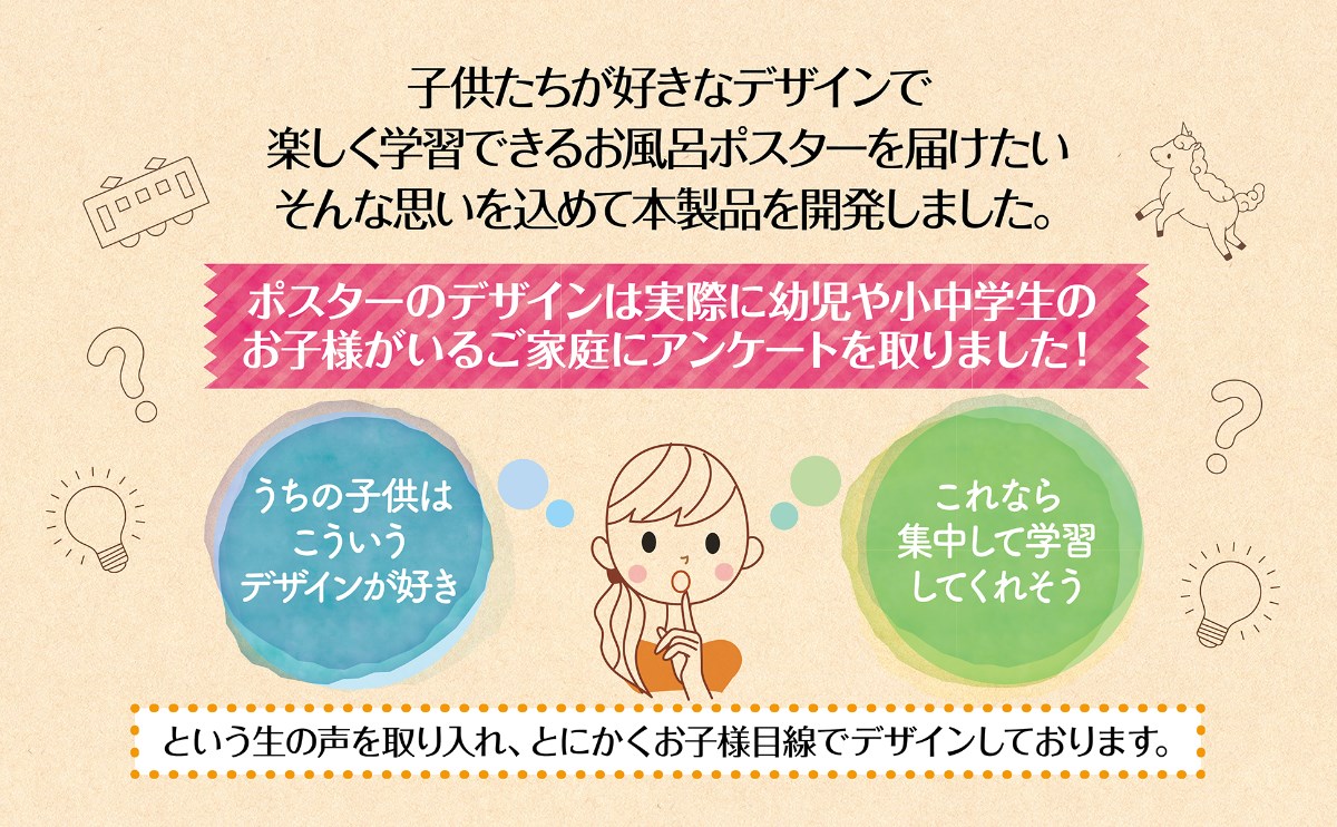毎日10分で自然と学べる。忙しいご家庭でも「ながら学習」ができるお風呂知育ポスターです。