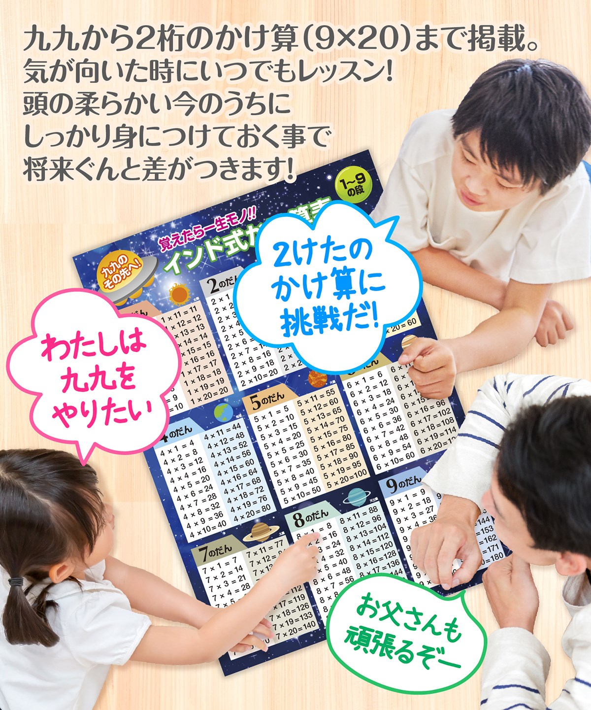 お風呂の学校 インド式かけ算 1-9の段 宇宙デザイン お風呂ポスター 日本製 算数 知育 学習 九九表 A2サイズ