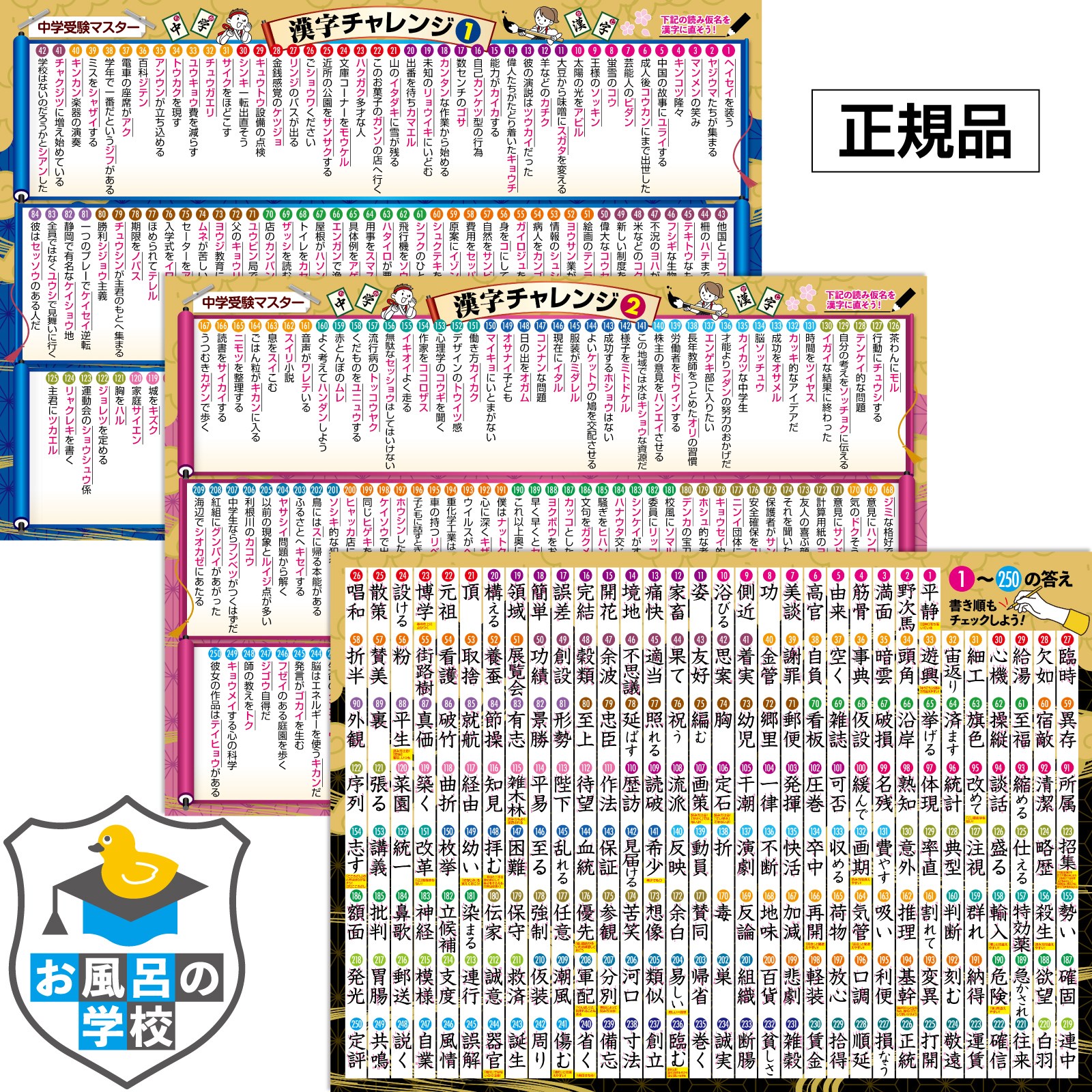 お風呂の学校 中学受験マスター漢字チャレンジ お風呂ポスター 3枚セット 日本製 B3サイズ 国語 学習 知育 防水