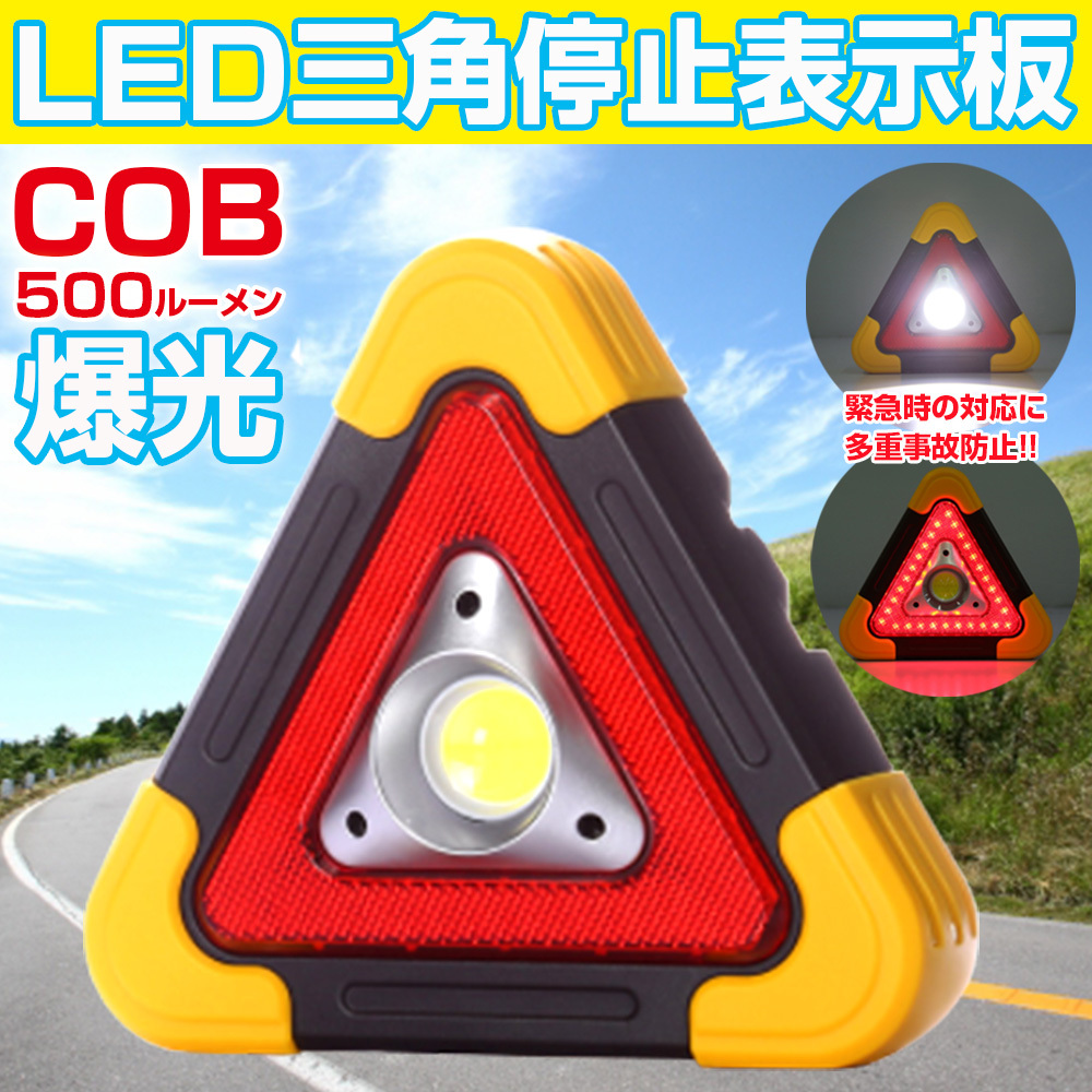 三角停止表示板 三角停止板 非常灯 赤色灯 白色灯 作業灯 緊急停止板 LED COBライト 事故 故障 安全対策 500ルーメン 訳あり